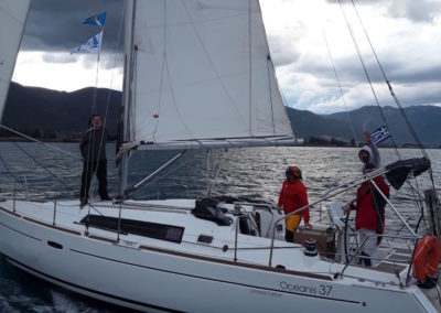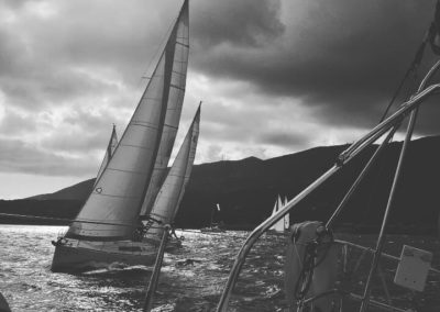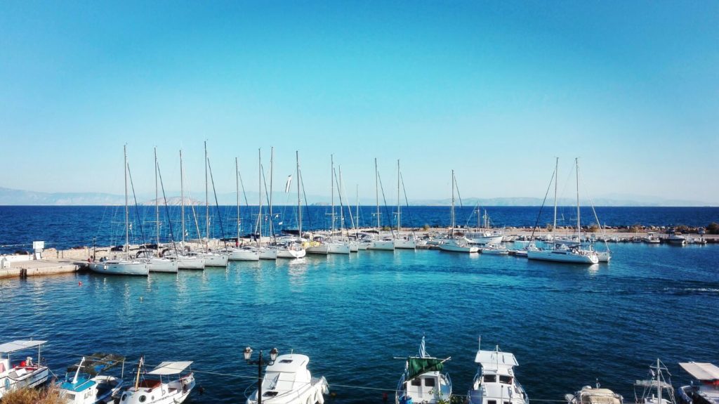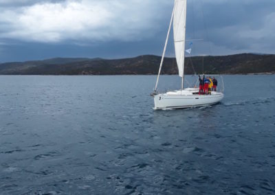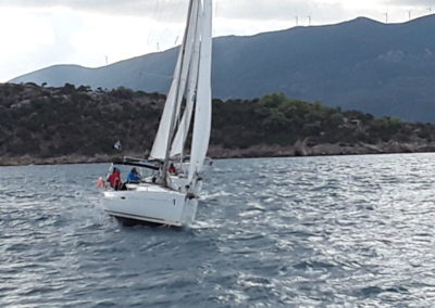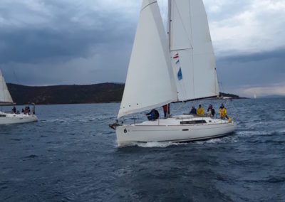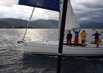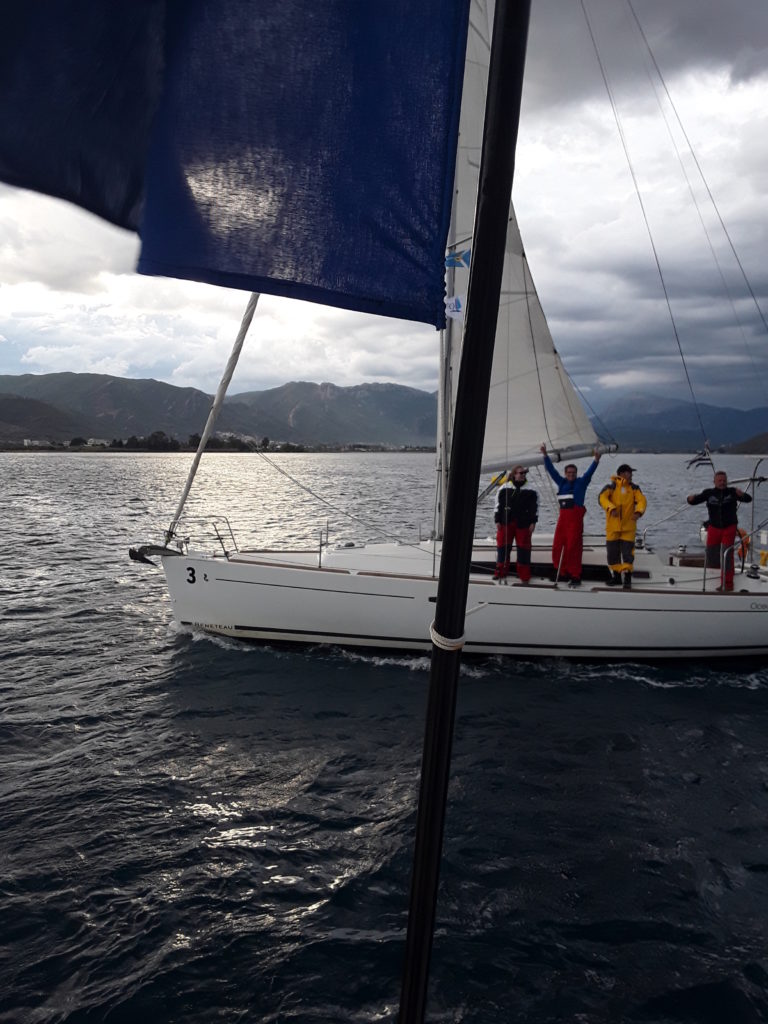 Mittwoch 25.10. 09:00 Skipperbesprechung in der Taverna „Vathi“, nachdem nachts mehrere Gewitter durchgingen, regnete es sich morgens richtig ein. Ab 10:00 klarte es langsam auf, für Nachmittag wurde N-NE Wind mit 3-4 Bft. prognostiziert. Kurz nach 11:00 ging es mit dem Follow me los, da ein Start vor Vathi nicht möglich gewesen wäre. Bei der N-Spitze von Methana vor Ag. Georgios konnte dann ein Start bei einsetzenden N durchgeführt werde. Tagesziel Poros, nach dem Start eine Kreuz zur Insel Moni, diese Stb. runden, von dort Raumschots bis in den Golf von Poros ins Ziel. Obwohl es unterwegs nicht so aussah als kämen alle Yachten ins Ziel, schaffte auch die letzte Yacht bei auffrischenden Wind das Finale. Länge der Wettfahrt 16 Sm.