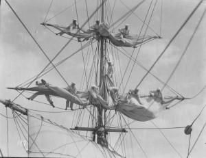 So führt er uns in die Jahre 1889/1890, in denen der Seekadett Alfred Winkler die Weltreise des Schiffes „SMS (Seiner Majestät Schiff) Fasana“ erlebte. Obwohl sie kein besonders großes Kriegsschiff ist (l=70m), verfügt sie über eine Besatzung von 250 Mann, eine Dampfmaschine mit 1600 PS, eine Segelfläche von 2000m², Großküche, Fleischerei, Stallungen mit Lebendvieh, Bäckerei, Arrest, Bordspital, Kanzlei, Waffenkammer und vieles mehr.