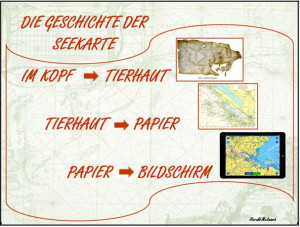 Ein interessanter Vortrag von Harald Melwisch über die Entwicklung der Unterstützung der Seefahrt durch „Seekarten“, von der Antike über Tierhaut, Papier bis zum Computerbildschirm.